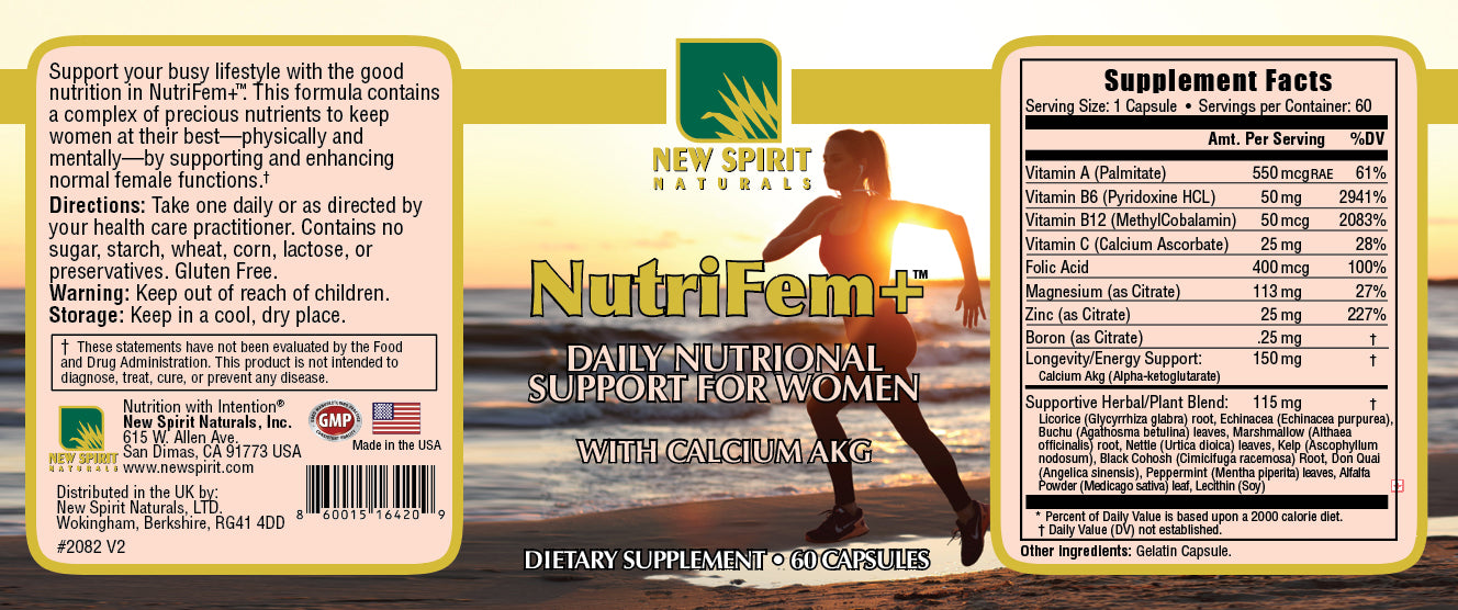 When life gets busy, “good enough” nutrition is usually the first thing to slip—and over time, that can quietly impact how steady, clear, and resilient you feel day to day. NutriFem+ is built in the New Spirit style: a simple daily habit that helps cover common nutritional gaps with a women-focused blend of essential vitamins and minerals, supportive botanicals, and Calcium Alpha-Ketoglutarate (Ca-AKG) to support cellular vitality—so your body has consistent foundational support even when your schedule isn’t.